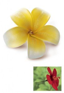 A tradition in the Pacific Islands, flowers worn in the hair represents love, innocence and beauty. Worn as an ornate hairpiece or a single blossom behind the ear, these flowers are for special occasions or everyday wear. In the Pacific Islands, any flower worn behind the right ear means the wearer is single and available. While a flower worn behind the left ear means the wearer is spoken for. Flower total dimension: approximately 3 to 3.5 inch diameter.
